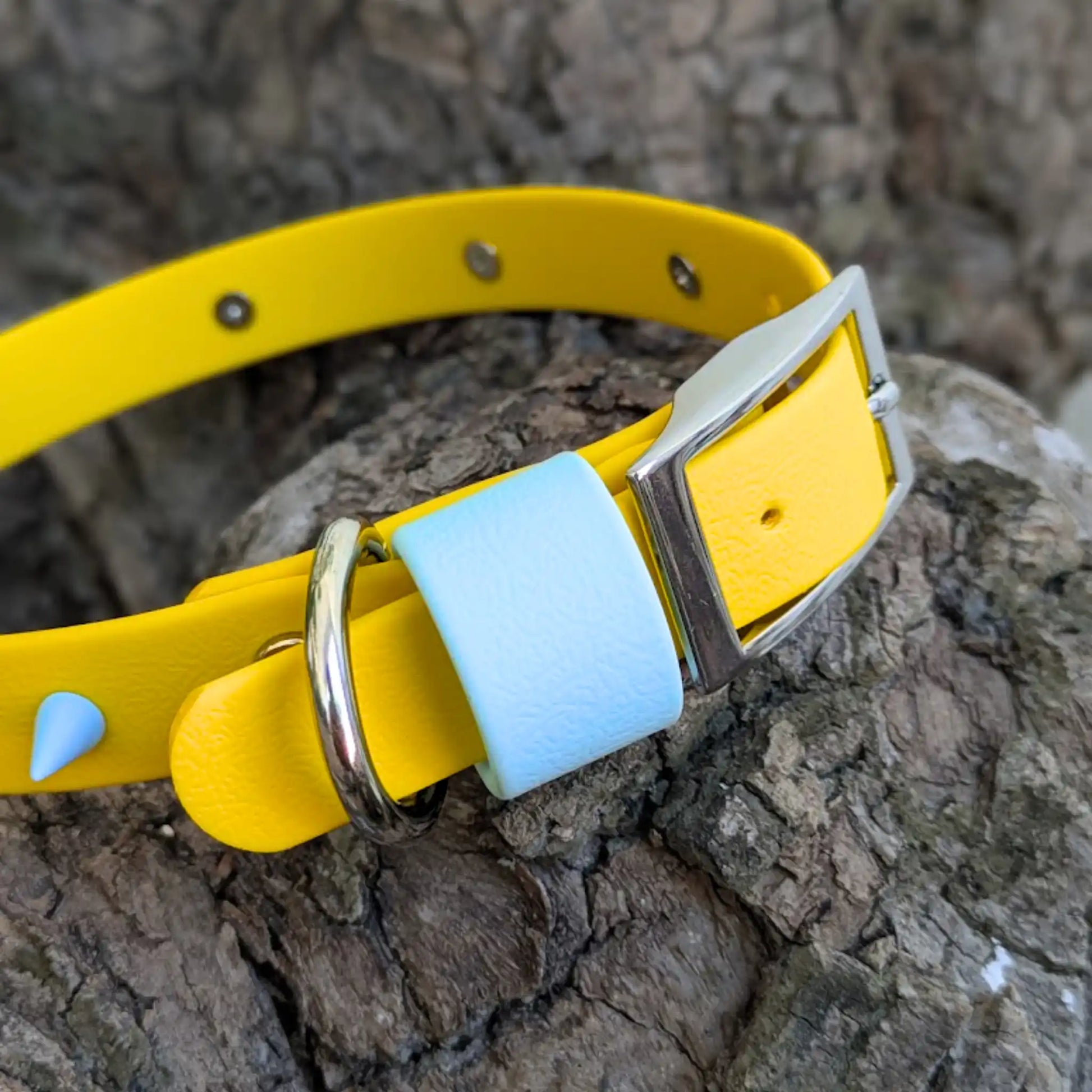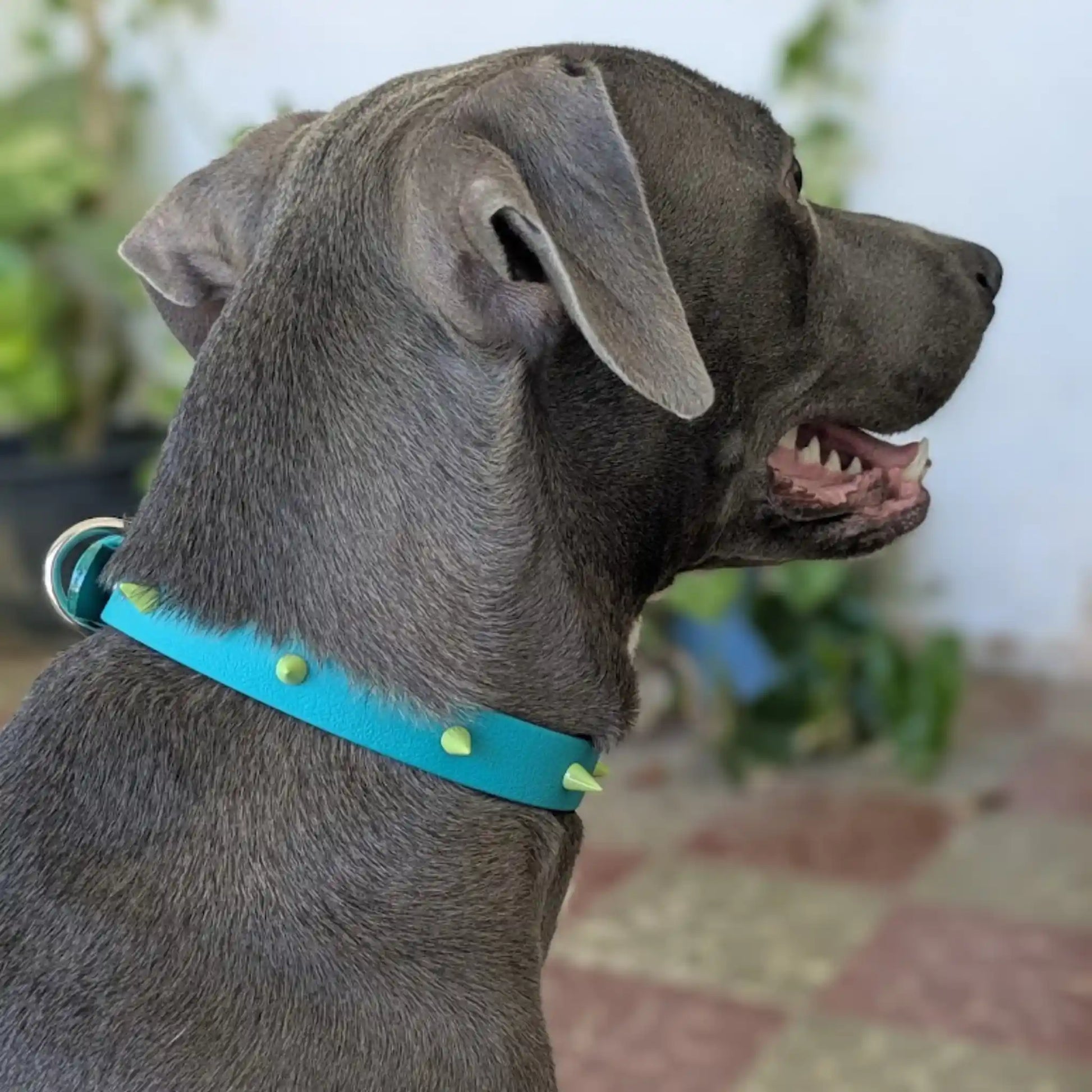 Nuestros collares con pinchos están diseñados como un accesorio estético y llamativo. Te recomendamos usarlos siempre bajo supervisión y evitar juegos bruscos con otros perritos, ya que los picos de metal podrían lastimar accidentalmente.