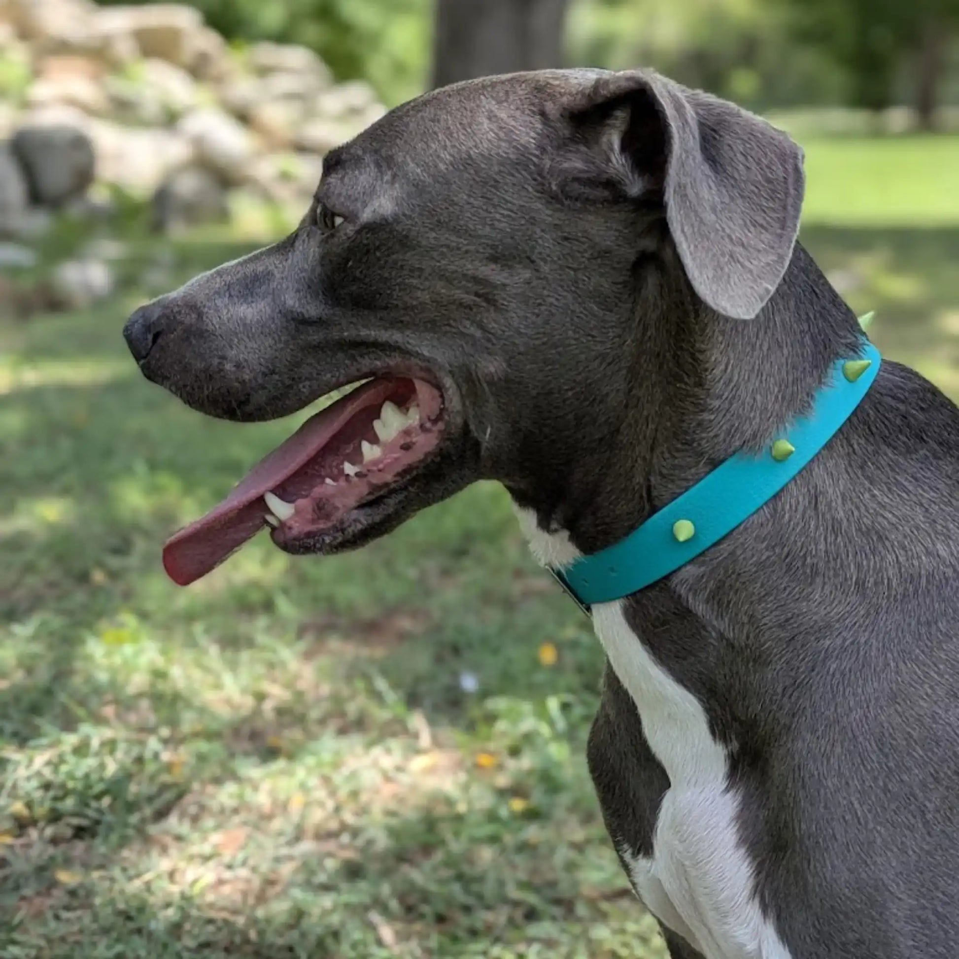 Cinta recubierto de PVC (Tipo Biotano / Biothane) y spikes de metal.